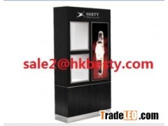Description :This showcase not only can display your product on 3 floor but also can set the advertisement on the board with LED light.
